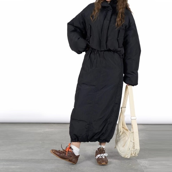 Feature: Warm and cozy, feel smooth and soft, lining filled with 90 duck down, full of lightweight, to provide sufficient cold insulation effect, rear split design makes the silhouette more lightweight and fashionable, waist and hem with drawstring design, the overall design of three-dimensional fashion.
